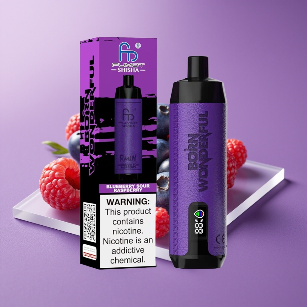 RandM Fumot Shisha 10000 Puffs 18ml 850mAh 0.6ohm Type-C Μπλε Βατόμουρο Ξινή Σμέουρα