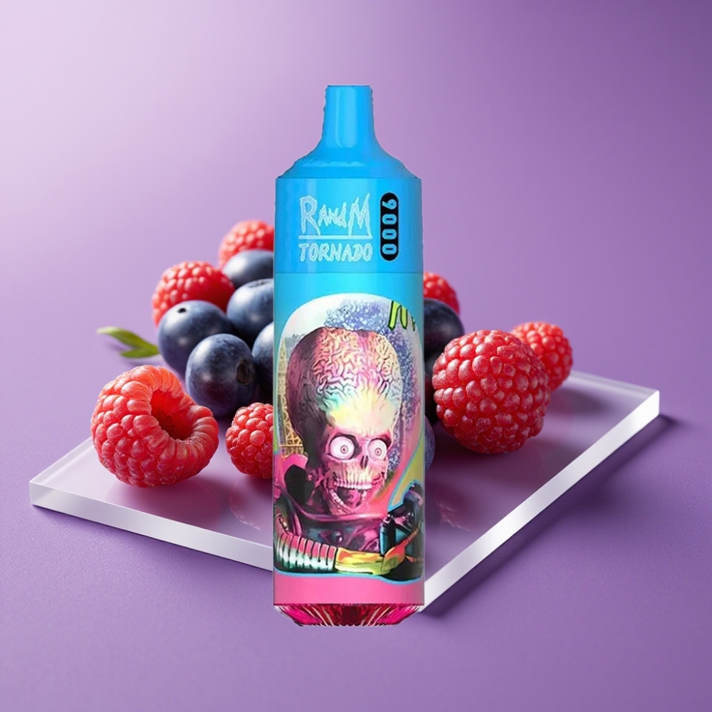 RandM Tornado 9000 Puffs 850 mAh 18 mL Mesh Coil RGB Display Βακκινιού Ξινή Σμέουρα