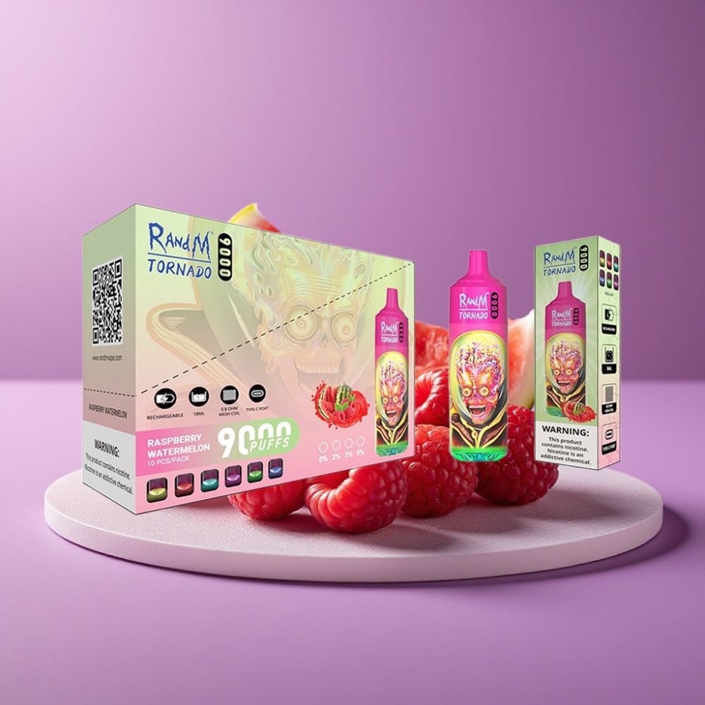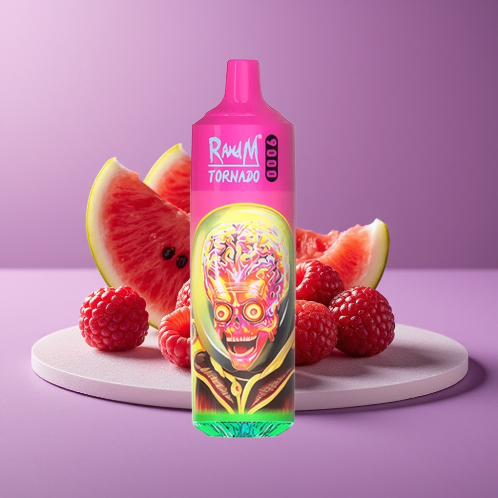 RandM Tornado 9000 Puffs 850 mAh 18 mL Mesh Coil RGB Display Σμέουρο Καρπούζι