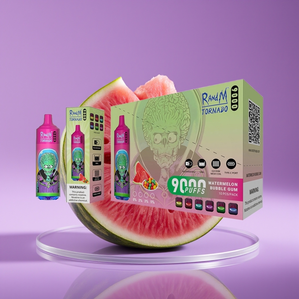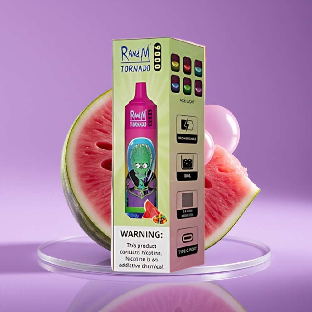 RandM Tornado 9000 Puffs 850mAh 18mL Mesh Coil RGB Display Καρπούζι Τσιχλόφουσκα