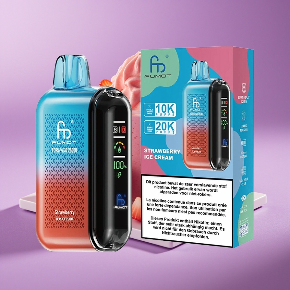 Fumot Tornado 20000 Puffs Dual Mesh 20ml 850mAh Smart Airflow 2% Φράουλα Παγωτό