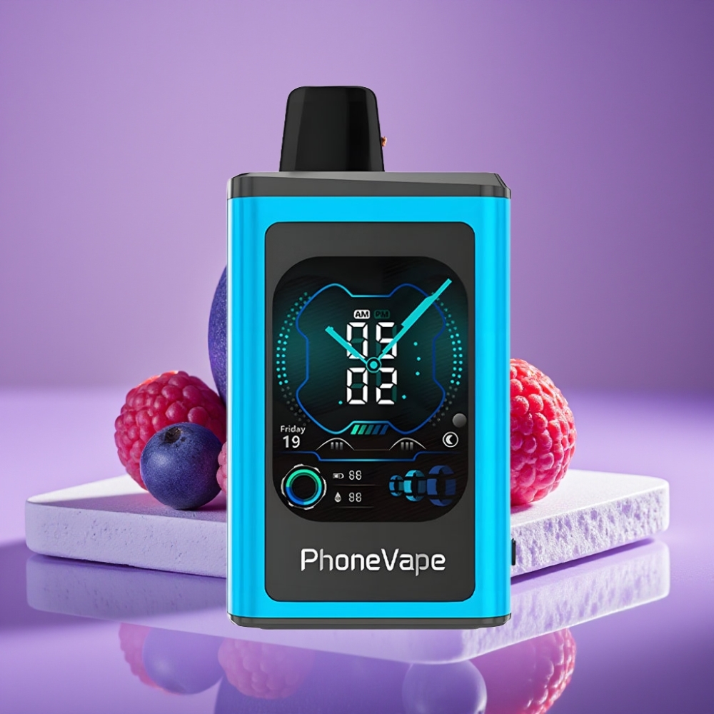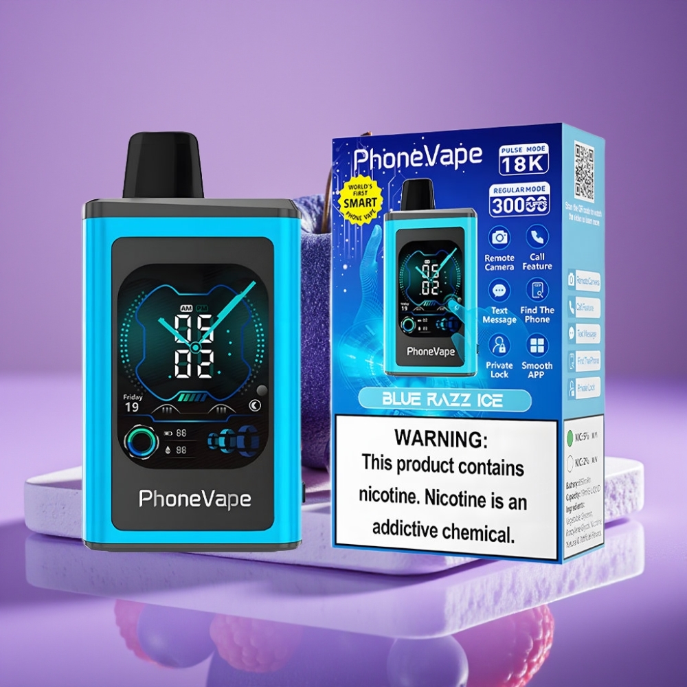 JNR PhoneVape 30000 πuffs Turbo Αερορρύθμιση Οθόνη Γαλάζιο Razz Πάγος