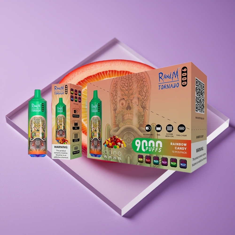 RandM Tornado 9000 Puffs 850mAh 18mL Mesh Coil RGB Ουράνιο Τόξο Ζαχαρωτά