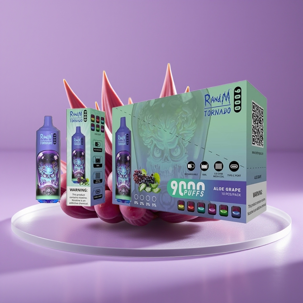 RandM Tornado 9000 Puffs 850mAh 18mL Mesh Coil RGB Display Αλόη Σταφύλι