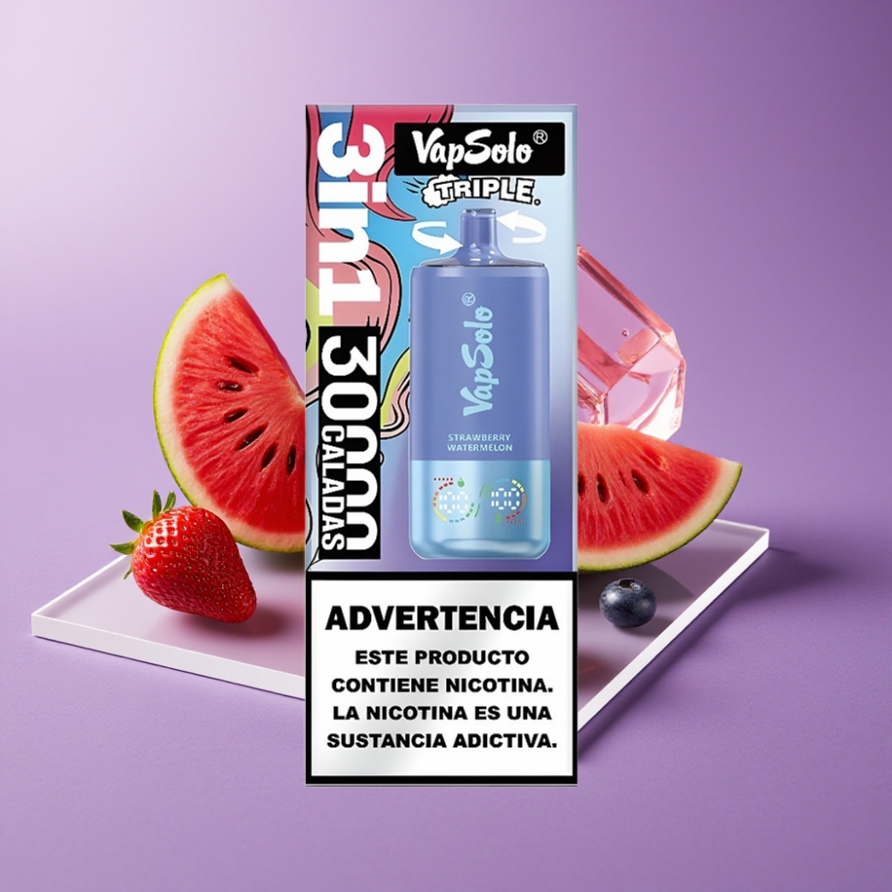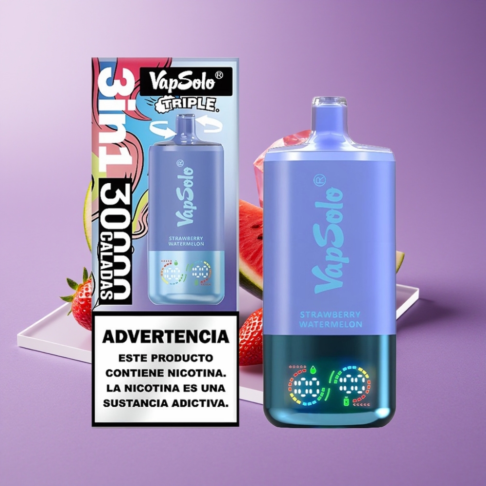 VapSolo Triple 30000 Puffs 40ml Type-C Φράουλα Καρπούζι & Μύρτιλο Πάγος